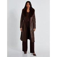 Quiz Brown Faux Leather Trench Coat - Faux leather finish - Faux fur trim - Belted - Button front - Always check the care wash label - Cool hand wash with mild detergent Material Content: Polyurethane 100 % Faux leather finish Faux fur trim Belted Button front Always check the care wash label Cool hand wash with mild detergent About the brand: - Manufacturers part number: Quiz_5063331095782