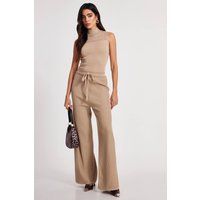 These trousers feature a high-waisted, relaxed fit with an elasticated waist for comfort. The knit fabric is adorned with bead details, making them suitable for casual wear in autumn and winter. | Quiz Women's Stone Knit Beaded Trousers | Size: Medium - Manufacturers part number: Quiz_5063331112588