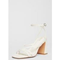These high block sandals feature an asymmetrical strappy design and a sturdy block heel for added support. Ideal for elevating your look while ensuring comfort throughout the day. | Quiz Women's White Strappy High Block Heels | Size: 6 - Manufacturers part number: Quiz_5063331141571