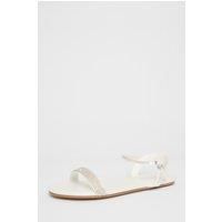 These flat sandals feature a round toe design and are embellished with diamante accents for a touch of elegance. Ideal for holiday wear, they provide comfort and style for open-toe occasions. | Quiz Women's White Diamante Flat Sandals | Size: 4 - Manufacturers part number: Quiz_5063331141793