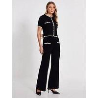 Quiz Black Knitted Palazzo Trouser Size & Fit True to size - order your usual size High rise fit Details Quiz Black Knitted Palazzo Trouser Black Button detailing Matching top available separately Material Content: Viscose 69 %, Polyester 31 % Knitted finish Wide Leg Palazzo style Always check the care wash label Cool hand wash with mild detergent About the brand: - Manufacturers part number: Quiz_5063331153444