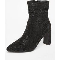 Quiz Black Diamante Heeled Boot - Faux suede finish - Diamante embellished - Ankle high - Ruched design - Pointed toe - Block heel - Interior zip - Heel height: 8 cm / 3 inches - Wipe clean Lining: Textile/Other Sole: Other Materials Upper: Other Materials Faux suede finish Diamante embellished Ankle high Ruched design Pointed toe Block heel Interior zip Heel Height: 8 cm / 3 inches Wipe clean - Manufacturers part number: Quiz_5063331258163