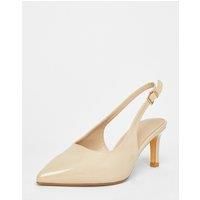 Quiz Wide Fit Nude Slingback Court Heels - Patent finish - Pointed toe - Sling back strap - Court style - Heel height: 8 cm / 3 inches - Excluding trims - Wipe clean Lining: Textile/Other Sole: Other Materials Upper: Other Materials Patent finish Pointed toe Sling back strap Court style Heel height: 8 cm / 3 inches Excluding Trims Wipe clean - Manufacturers part number: Quiz_5063331259665