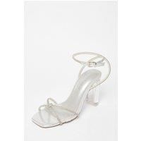 These wide fit heels feature a clear block design with a diamante embellishment, providing a stylish open toe option. Ideal for occasions, they offer comfort and stability with a secure fit. | Quiz Women's Silver Wide Fit Diamante Clear Block Heels | Size: 3 - Manufacturers part number: Quiz_5063331260456