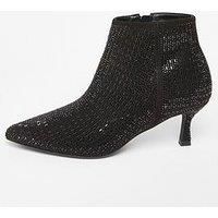 Quiz Black Embellished Flare Heel Boots - All over diamante embellishment - Pointed toe - Short flare heel - Inner zip fastening - Heel height: 7 cm / 2.7 inches - Wipe clean Lining: Textile/Other Sole: Other Materials Upper: Other Materials Diamante embellished Zip fastening Low heel Excluding Trims All over diamante embellishment Pointed toe Short flare heel Inner zip fastening Heel Height: 7 cm / 2.7 inches Wipe clean - Manufacturers part number: Quiz_5063331265338