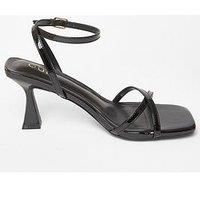 Quiz Black Cross Strap Flared Heels - Faux leather - Patent finish - Cross strap - Open toe - Flared heel - Heel height: 8 cm / 3.15 inches - Wipe clean Lining: Textile/Other Sole: Other Materials Upper: Other Materials Faux leather Patent finish Cross strap Open toe Flared heel Heel height: 8 cm / 3.15 inches Wipe clean - Manufacturers part number: Quiz_5063331268650