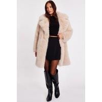 This faux fur midi coat features a longline design with an oversized collar, providing warmth and comfort for casual outings or winter events. Ideal for layering in cold weather. | Quiz Women's Stone Faux Fur Longline Coat | Size: Small - Manufacturers part number: Quiz_5063331277522