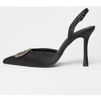 Quiz Black Satin Brooch Court Heels - Satin finish - Diamante brooch detail - Elasticated slingback strap - Pointed toe - Stiletto heel - Heel height: 10 cm / 4 inches - Wipe clean Lining: Textile/Other Sole: Other Materials Upper: Other Materials Satin finish Diamante brooch detail Elasticated slingback strap Pointed toe Stiletto heel Heel Height: 10 cm / 4 inches Wipe clean - Manufacturers part number: Quiz_5063331284469