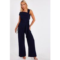 Quiz Navy Asymmetric Wide Leg Jumpsuit - Asymmetric neckline - Tie waist detail - Wide leg - Model height: 5'7" - Model wears uk 8 / us 4 / eur 36 - Always check the wash care label - Cool hand wash with mild detergent Material Content: Polyester 96 %, Elastane 4 % Asymmetric neckline Tie waist detail Wide leg Model height: 5 7" Model wears UK 8 / US 4 / EUR 36 Always check the wash care label Cool hand wash with mild detergent - Manufacturers part number: Quiz_5063331294178