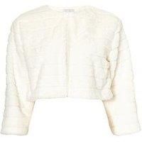 Quiz White Faux Fur Cropped Cover Up - Faux fur finish - Ribbed design - Cropped fit - 3/4 length sleeves - Hook and eye closure - Always check the wash care label - Cool hand wash with mild detergent Material Content: Polyacrylic 90 %, Other materials 10 % Model height: 5 9" Model wears size: S Faux fur finish Ribbed design Cropped fit 3/4 length sleeves Hook and eye closure Always check the wash care label Cool hand wash with mild detergent - Manufacturers part number: Quiz_5063331314050