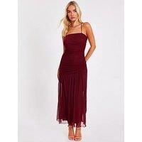 Quiz Dark Red Drop Waist Midaxi Dress - Mesh finish - Square neckline - Ruched bodice - Drop waist design - Cami straps - Model height: 5'7" - Model wears uk 8 / us 4 / eur 36 - Always check the wash care label - Cool hand wash with mild detergent Material Content: Polyester 96 %, Elastane 4 % Mesh finish Square neckline Ruched bodice Drop waist design Cami straps Model height: 5 7" Model wears UK 8 / US 4 / EUR 36 Always check the wash care label Cool hand wash with mild detergent - Manufacturers part number: Quiz_5063331322963