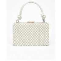 Quiz White Pearl Knot Top Handle Bag - Pearl embellished - Knot top handle - Detachable chain strap - Clasp closure - Length:18cm - Depth:5cm - Height:12cm - Wipe clean Material Content: Polyester 97 %, Elastane 3 % Pearl embellished Knot top handle Detachable chain strap Clasp closure Length:18cm Depth:5cm Height:12cm Wipe clean - Manufacturers part number: Quiz_5063331340301