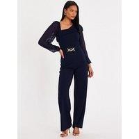 Quiz Navy Asymmetric Buckle Detail Jumpsuit - Asymmetric neckline - Chiffon sleeves - Hardware buckle detail - Wide leg - Model height: 5'6" - Model wears uk 8 / us 4 / eur 36 - Always check the wash care label - Cool hand wash with mild detergent Material Content: Polyester 95 %, Elastane 5 % Asymmetric neckline Chiffon sleeves Hardware buckle detail Wide leg Model height: 5'6" Model wears UK 8 / US 4 / EUR 36 Always check the wash care label Cool hand wash with mild detergent - Manufacturers part number: Quiz_5063331351994