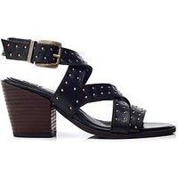 Moda In Pelle Mayley Stud Western Heeled Sandal - Black Make a statement in Mayley, the asymmetrical strap sandal featuring studded detailing and a stacked Cuban heel. Designed with a nod to the popular Western trend, this unique sandal is a must have for the fashion forward. Heel Height: 3 Inch Material Content: PORVAIR Washing Instructions: Wipe Clean Lining: Leather Sole: Other Materials Upper: Leather Chunky buckle fastening Western styling with the cuban heel and studded upper and detail straps Lea...