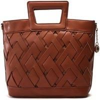 Add the Lattie tote to your accessory collection. This bag features a lattice pattern design with feature handles and a shoulder strap so you can wear your bag exactly how you like. The metal feet ensure bag protection and longevity. | Moda In Pelle Women's 'Lattice Tote' Porvair Tote Bag in Tan - Manufacturers part number: Moda In Pelle_5063333066711