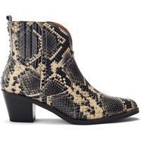Add a touch of Western-inspired charm to your wardrobe with the Anniee leather ankle boots. Crafted with subtle stud detailing and a convenient zip fastening for ease of wear, this versatile style effortlessly bridges smart and casual looks. Whether paired with denim or a flowing dress, Anniee brings a chic, cowgirl-inspired edge to any outfit. | Moda In Pelle Women's 'Anniee' Snake Print Leather Heeled Boots in Natural | Size: 5