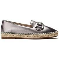 Discover endless styling options with Edulis. This shoe features a sleek slipper-cut silhouette with elegant snaffle trim, bringing a summery feel to any look. Perfect for warmer days, pair Edulis with everything from dresses to denim. The leather sock and lining provide all-day comfort. | Moda In Pelle Women's 'Edulis' Leather Loafers in Metallic Silver | Size: 4