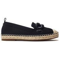 Make an entrance in Emaria, the knitted espadrille loafer. This soft, breathable style features chain detail, adding a fresh, modern feel with a durable sole offering both style and comfort. Emaria is perfect for both casual outings and a relaxed day at the beach. | Moda In Pelle Women's 'Emaria' Textile Loafers in Black | Size: 3