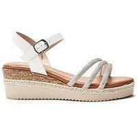 Moda In Pelle Kandace Wedge Sandals - White/silver Keep it cool in Kandace. This strappy sandal features a cork heel cover with plaited trim detailing, perfect for your next holiday in the sun. Heel Height: up to 2.5 Inch Material Content: PORVAIR Washing Instructions: Wipe Clean Lining: Leather Sole: Other Materials Upper: Textile plaited detail straps wedge unit Fits true to size.