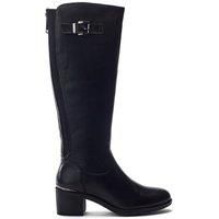 Set your sights on Sansho, the long riding boot with a block heel. The elastic panel and zip fastening ensure effortless foot entry whilst the faux fur lining and leather sock provide all-day comfort. | Moda In Pelle Women's 'Sansho' Leather Heeled Boots in Black | Size: 4
