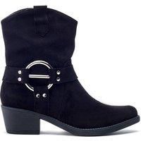 Make an entrance with Gillian. This Western-style boot features harness details creating a bold focal point, perfect for elevating any casual look. The zip fastening provides easy on-and-off wear. | b.soleful Women's 'Gillian' Alcantara Heeled Boots in Black | Size: 3