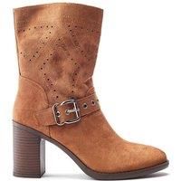 Reach new fashion heights in Giullia. This boot features a high block heel for height and stability. The buckle embellishment adds style whilst the zip fastening provides easy on-and-off wear. | b.soleful Women's 'Giullia' Alcantara Heeled Boots in Camel | Size: 5