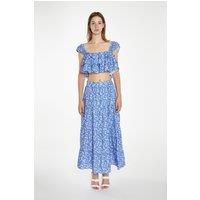 Tiered Maxi Skirt. Make a statement with our Tiered Maxi Skirt, featuring layers of flowing fabric that create a dramatic silhouette. Perfect for special occasions or everyday elegance, pair it with the matching top for a polished look or a loose blouse for a bohemian, free-spirited style. | Shnoo Women's Tiered Maxi Skirt in Blue | Size: 10