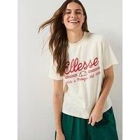 Ellesse Women's L'Anse T- Shirt Size & Fit True to size - order your usual size Regular fit Available in sizes 6 - 16 Details Women's L'Anse T- Shirt by Ellesse Off white Printed branding Crew neckline Short sleeves Material & Care Material Content: 100% Cotton Washing Instructions: Machine Washable