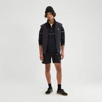 The Rushano Gilet. Inspired by the spirited traditions of winter ball sports, this is Giochi Invernali. The Rushano Gilet is lightly wadded with a 2x2 rib funnel neck collar, detailed with laid-on stripes and a silicone print knit tape. Finished with a silicone heat transfer at the chest. | Ellesse Men's Rushano Gilet in Black | Size: Medium