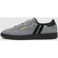 The Monaco Trainer. Step out in style in these classic lace up trainers. Crafted from premium suede and durable rubber gum outsole these trainers are made to last. The Monaco Trainer effortlessly blends timeless style with modern comfort, making it a versatile addition to any wardrobe. Complete with contrast leather paneling and foil branding for that classic Patrick look. | Patrick Men's Monaco Cupsole in Charcoal | Size: 7