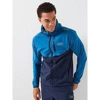 OEX Mens Fell 20 Track Top Size & Fit True to size - order your usual size Regular fit Regular length Available in sizes XS - 2XL Details Mens Fell 20 Track Top- Dark Blue by OEX Blue Running jacket Colour block print High neck Long elasticated cuff sleeves Zip up fastening Fixed hood Chest pocket and 2 slip side pockets Material & Care Material Content: 87% Polyamide / 13% Elastane Washing Instructions: Machine Washable