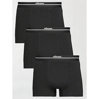 Ellesse Men's Ambria Trunks 3 Pack Size & Fit True to size - order your usual size Regular fit Details Men's Ambria Trunks 3 Pack by Ellesse Black Branded and elasticated waistband 3 pairs Material & Care Material Content: 95% Polyester / 5% Elastane Washing Instructions: Machine Washable