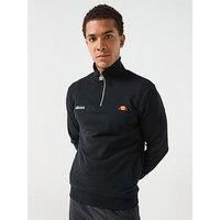 Ellesse Men's Pelegrini 1/4 Zip Size & Fit True to size - order your usual size Regular fit Regular length Available in sizes S - 2XL Details Men's Pelegrini 1/4 Zip by Ellesse Black Funnel neck Long ribbed cuff sleeves Quarter zip fastening Material & Care Material Content: 80% Cotton / 20% Polyester Washing Instructions: Machine Washable