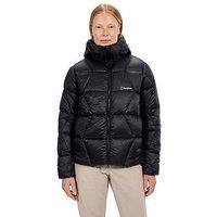 Berghaus Womens Explorer Down Jacket Size & Fit True to size - order your usual size Regular fit Regular length Available in sizes 8 - 18 Details Womens Explorer Down Jacket by Berghaus Black Padded jacket High neck Long sleeves Zip up fastening Side pockets Fixed hood Material & Care Material Content: Body: 100% Polyester. Insulation: 100% Down (80% Down 20% Duck Feather). Lining: Polyamide Washing Instructions: Machine Washable