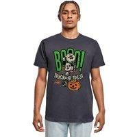 100% Ringspun Cotton. Fabric: Midweight, Soft Touch. Design: Jack-o-Lantern, Printed, Skull, Spider, Spider Web, Text. Characters: Mickey Mouse. Neckline: Crew Neck, Lycra Ribbed, Single Needle Stitching. Sleeve-Type: Short-Sleeved. 100% Officially Licensed. 153gsm. S: 36 in. M: 40 in. L: 44 in. XL: 48 in. XXL: 52 in. 3XL: 56 in. 4XL: 60 in. 5XL: 64 in. | Disney Men Boo Trick Or Treat Mickey Mouse Cotton T-Shirt in Navy | Size: large