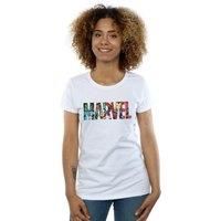 100% ringspun cotton. Design: characters, logo, printed. Neckline: crew neck. Sleeve-type: short-sleeved. Single needle stitching, supersoft. 100% officially licensed. 153gsm. Packaging: swing tag. | Marvel Comics Women's Characters Cotton Logo T-Shirt in White | Size: 2XL