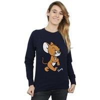 Material: 100% ringspun cotton. Fabric: single jersey. Characters: jerry. Design: printed, text. Back neck tape, heavyweight. Hem: elasticated. Neckline: crew neck, elasticated. Cuff: elasticated. Sleeve-type: long-sleeved. Fastening: pull over. 100% officially licensed. Packaging: swing tag. | Tom & Jerry Women's Angry Mouse Cotton Sweatshirt in Navy | Size: Small