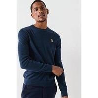 PS PAUL SMITH Regular Fit Zebra Knitted Jumper Size & Fit True to size - order your usual size Regular fit Available in size: S:36; M:38; L:40; XL:42; 2XL:44 Details Regular Fit Zebra Knitted Jumper by PS PAUL SMITH Navy Knitted sweater made from comfortable cotton blend for a soft finish Long sleeves Crew neck Ribbed neck, cuffs and waistband Classic zebra logo stitched on the chest Material & Care Material Content: 60% Cotton, 30% Nylon, 10% Wool Washing Instructions: Hand Wash Only