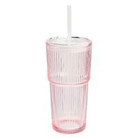 Thirsty£ This ribbed glass is ready. In a soft, translucent pink tint, its fresh and smart. And with a reusable straw, its great for cold drinks, iced coffees and everyday sips. Just fill, hydrate and enjoy. 1 Coffee glass. Height 24cm, Diameter 9cm. Capacity 680ml. Dishwasher safe. EAN: 5063388128891.