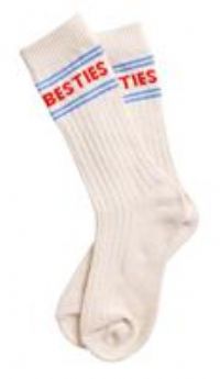 Besties from head to toe. These cream socks stitched with a message in varsity style are soft and snug and perfect for a Valentines Day surprise. Movie nights, brunches or just lounging together, they make friendship feel flirty and fun. Includes 1 pair of socks. Keep away from fire. EAN: 5063388160396.