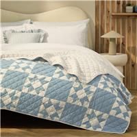 Add a softly rustic touch to bedtime with this cosy cotton bedspread. With a classic quilted motif design in blue and white, itll help create a happy haven of calm. Drape it over the bed and settle in for the night. Suitable for king sized bed. 100% cotton. Size L200, W220cm. Machine washable. EAN: 5063388689316.