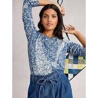 White Stuff Olive Print Jumper Size & Fit True to size - order your usual size Regular fit Available in sizes 8 - 18 Details Olive Print Jumper by White Stuff Blue Crew neckline Long sleeves Ribbed hem and cuffs Floral print Material & Care Material Content: 54% ORGANIC COTTON 30% MODAL 16% POLYESTER Washing Instructions: Machine Washable