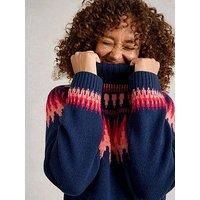White Stuff Fiona Fairilse Jumper Size & Fit True to size - order your usual size Regular fit Available in sizes 8 - 18 Details Fiona Fairilse Jumper by White Stuff Blue Knitted fabric Fair isle print Long sleeves Turtleneck Material & Care Material Content: 80% Lambswool 20% Nylon + 60% Polyester 30% Nylon 10% Wool + 35% Metallic Fibres 65% Polyester Washing Instructions: Machine Washable