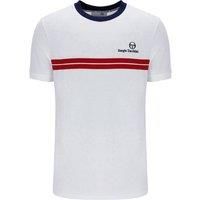Iconic Sergio Tacchini branding on the chest for authentic sports heritage appeal Contrast crew neckline adds a distinctive touch to the classic silhouette Horizontal stripe detail across the chest creates a timeless retro aesthetic Short sleeves with clean-cut edges for a neat, contemporary finish Regular fit design offers comfortable everyday wear without restricting movement Channel vintage sportswear vibes with this Sergio Tacchini New Supermac T-shirt. The classic design features the signature cont...