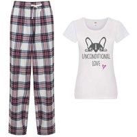 Great Quality, Great Gift Idea, Available in various colours, Lots Of Other Designs Available Too. | 60 SECOND MAKEOVER Women's Frenchie Unconditional Love Pyjama Set in Pink | Size: Small