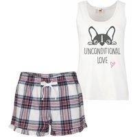 Great Quality, Great Gift Idea, Available in various colours, Lots Of Other Designs Available Too. | 60 SECOND MAKEOVER Women's Frenchie Unconditional Love Pyjama Set in Pink | Size: XL