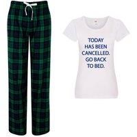 Ladies Novelty Tartan Pyjamas. 100% Cotton Machine Washable. Please note that sizes run on the smaller size so consider ordering a larger size. | 60 SECOND MAKEOVER Women's Today Has Been Cancelled Go Back To Bed Pyjama Set in Green | Size: Medium - Manufacturers part number: SR492_LONG_TART_GREEN_M