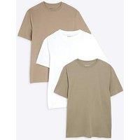 River Island Mens T-Shirt 3 Pack Mixed Colours Slim Fit Short Sleeve Tee Top