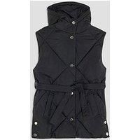 River Island Older Girls Belted Hooded Gilet Size & Fit True to size - order your usual size Regular fit Regular length Available in sizes 5-6 years - 11-12 years Details Older Girls Belted Hooded Gilet by River Island Black Fleece Lined Shower resistant Machine washable Fleece lined pockets Hooded Padded Belted Slip pockets Buttoned fastening Material & Care Material Content: Nylon (polyamide): 100% Washing Instructions: Machine Washable