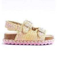 River Island Mini Girls Ombre Raffia Sandals Size & Fit Standard fit Available in sizes 3 younger - 9 younger Details Girls Ombre Raffia Sandals by River Island Mini Pink Open toe Flat heel with a chunky sole Slingback strap Buckle fastening Material & Care Material Content: Sole: Eva, Upper: Plastic Washing Instructions: Wipe Clean Raffia fabric Ombre print Open toe and backless Buckle fastening Ankle velcro strapped Flat soles Slip on